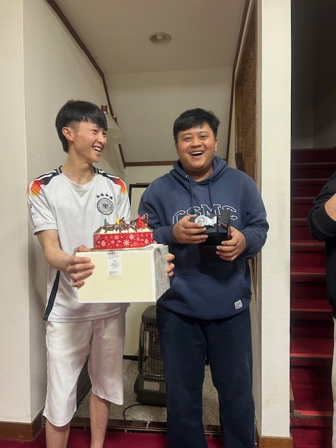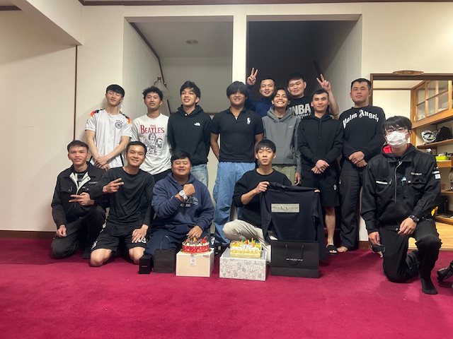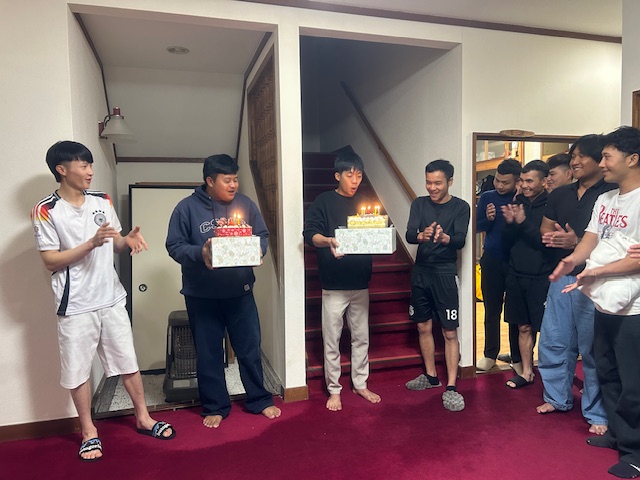 お料理と、4期生のビンと6期生のザッキのお誕生日会も開催いたしました。大きなケーキを2個用意して(^^♪