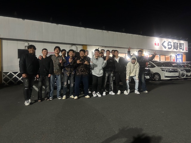 満足の様で、会計後外で写真をパチリ!!!2026.2.28・6期生歓迎会くら寿司